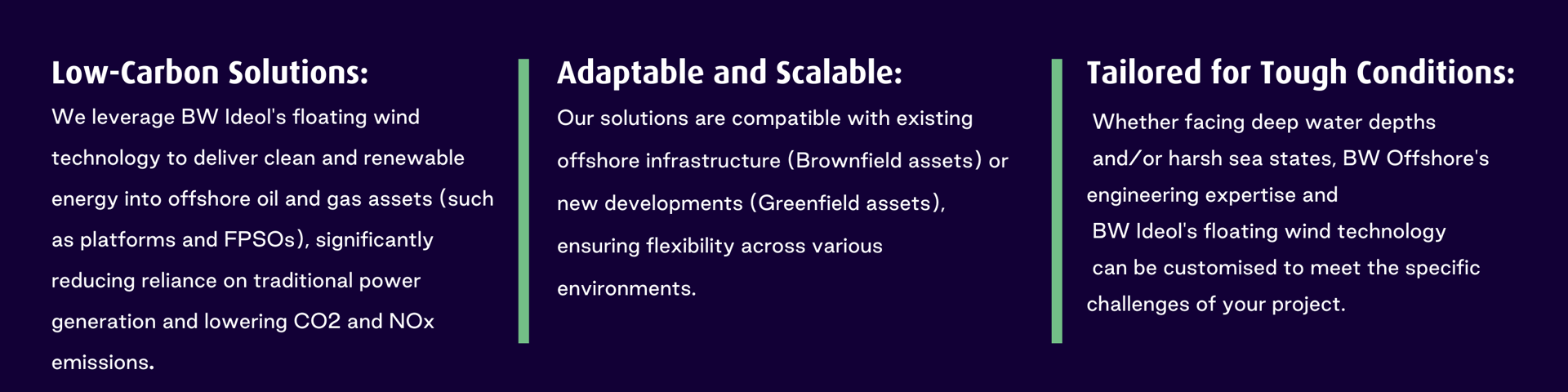 By leveraging our experience in developing and operating offshore energy production systems, BW Offshore provides a solid foundation for the continued success and growth of BW Ideol.